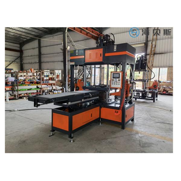 The HBS 1000B is a dry sand core shooter machine that utilizes the hot box core shooting technology. This innovative design allows for high quality, precise and efficient production of sand cores. The machine is equipped with a PLC control system, making it easy to operate and control. Its power supply is 380V/50Hz, and it operates in automatic mode, greatly reducing labor costs and increasing productivity.